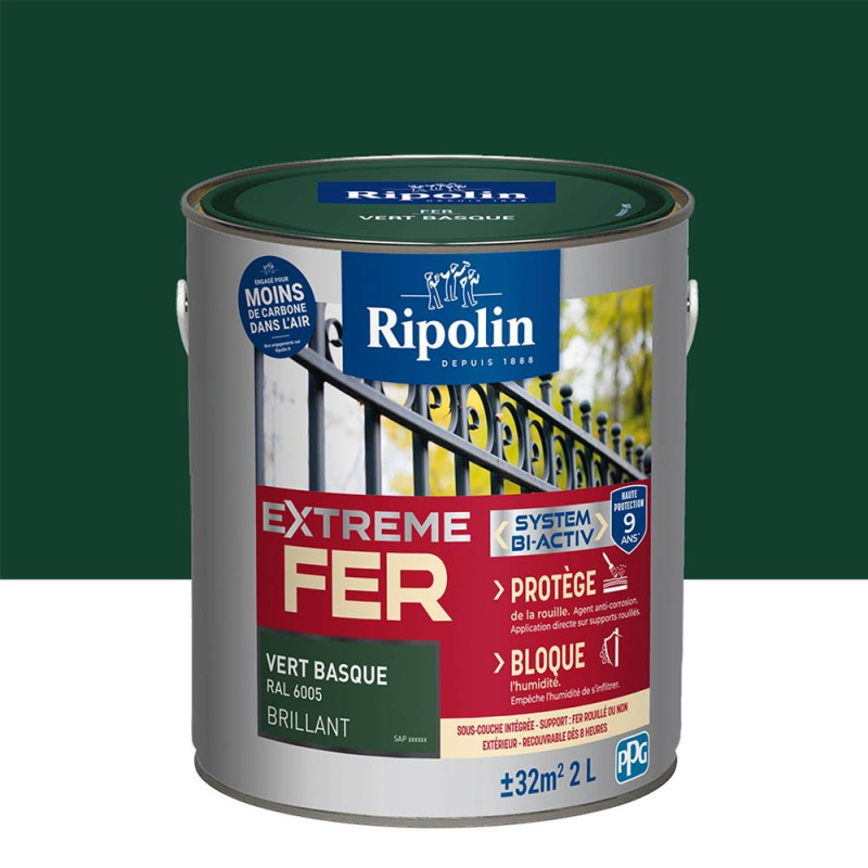 Peinture Ripolin extreme fer glycero vert basque brillant 2 L