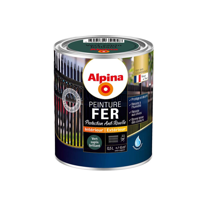 Peinture Alpina antirouille spéciale fer vert sapin brillant 0,5L