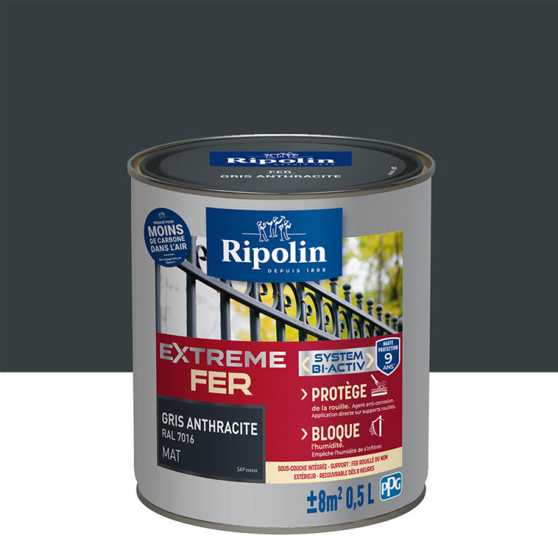 Peinture Ripolin extreme fer glycero gris anthracite mat 0,5 L