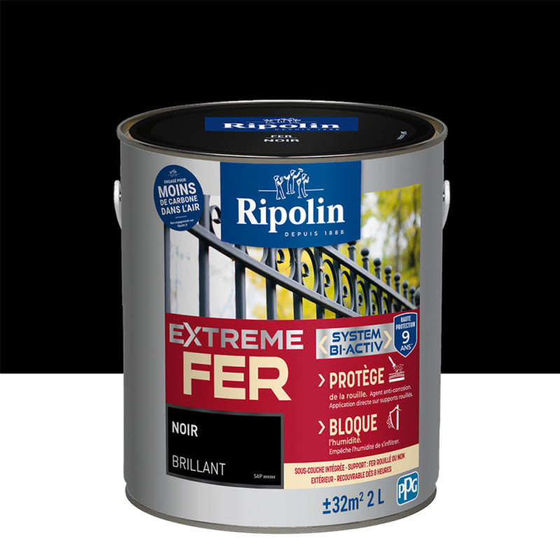 Peinture Ripolin extreme fer glycero noir brillant 2 L
