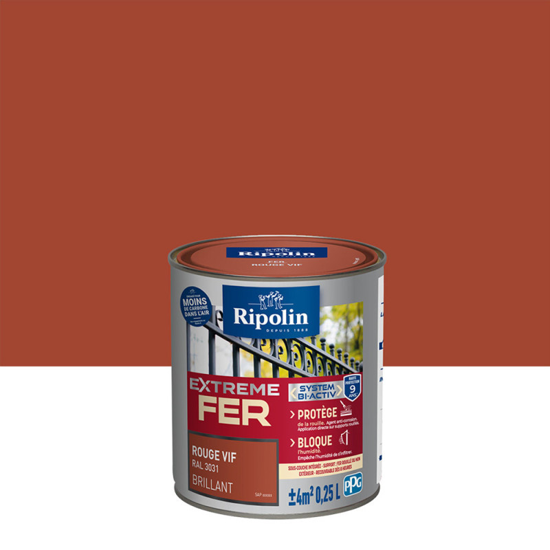 Peinture Ripolin extreme fer glycero rouge vif 0,25 L