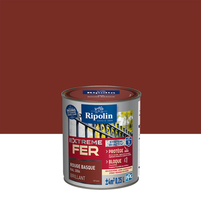 Peinture Ripolin extreme fer glycero rouge basque 0,25 L