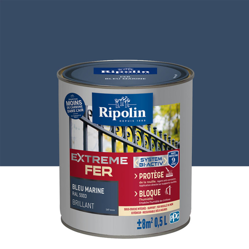 Peinture Ripolin extreme fer glycero bleu marine brillant 0,5 L