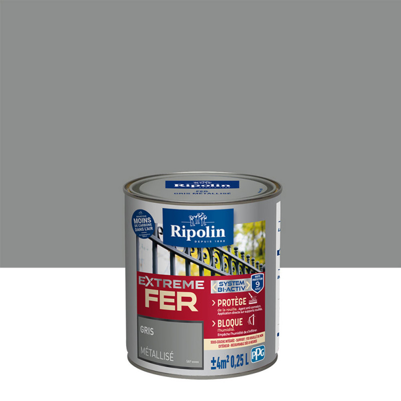 Peinture Ripolin extreme fer glycero gris métallisé 0,25 L