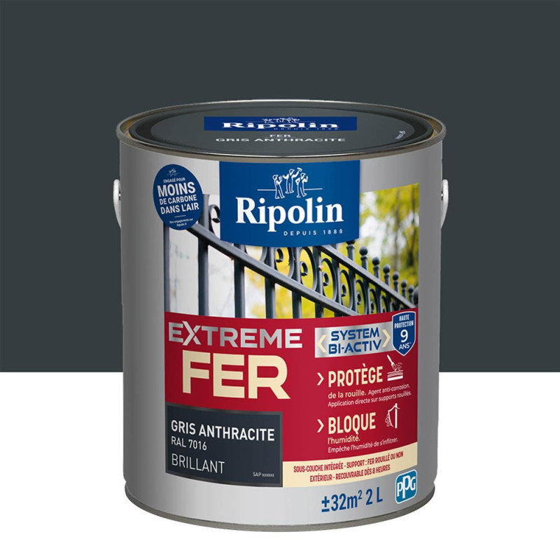 Peinture Ripolin extreme fer glycero gris anthracite brillant 2 L
