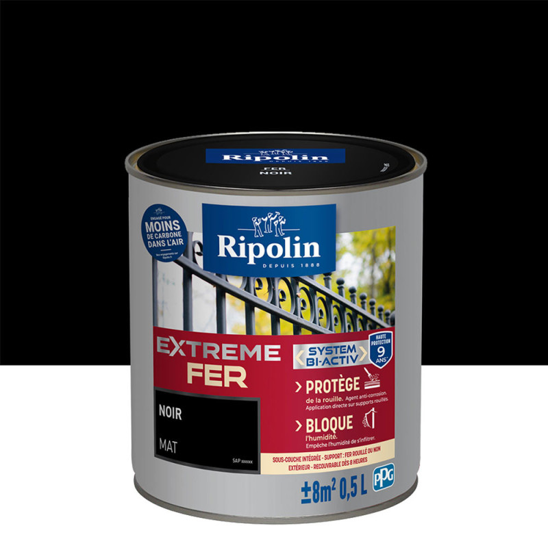 La peinture Ripolin noir mat extreme fer est 2 en 1 car elle regroupe à la fois la sous-couche et la peinture. Elle peut-être appliquée sur directement sur supports bruts, supports déjà peints ou rouillés. Sa formule permet une bonne résistance aux intempéries, UV, chocs... Elle est anticorrosion et assure une excellente adhésion du support. Cette peinture est teintable au comptoir de la machine à teinter, pour vous offrir une couleur unique. Garantie 7 ans.