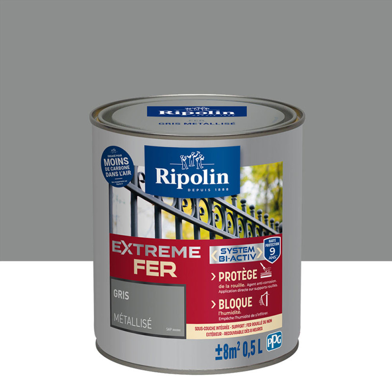 Peinture Ripolin extreme fer glycero gris métalisé 0,5 L