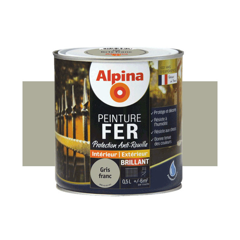 Peinture alpina antirouille spéciale fer gris franc brillant 0,5L