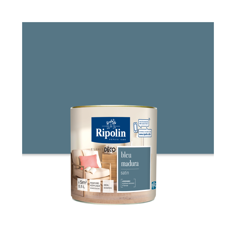 Peinture RIPOLIN Esprit Déco murs, plafonds, boiseries et radiateurs bleu madura satin 0,5L