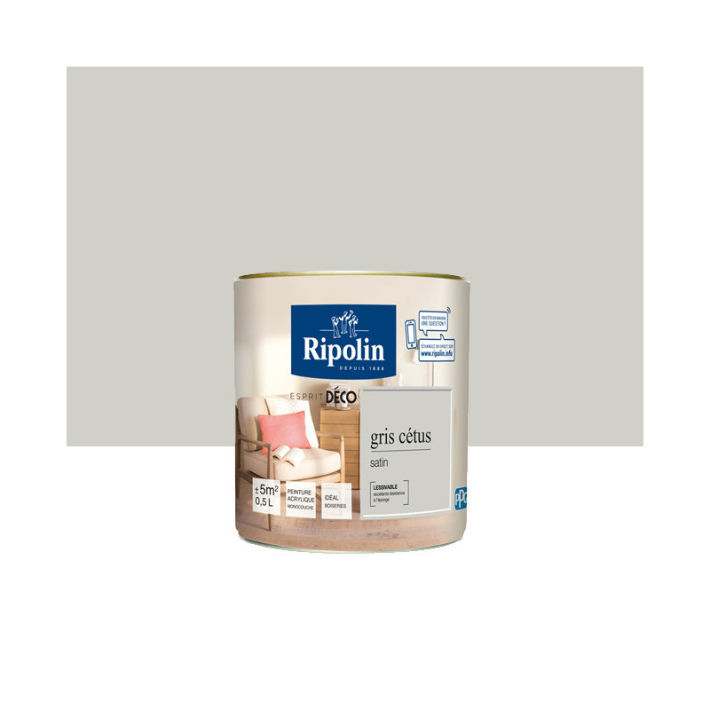Peinture RIPOLIN Esprit Déco murs, plafonds, boiseries et radiateurs gris cetus satin 0,5L