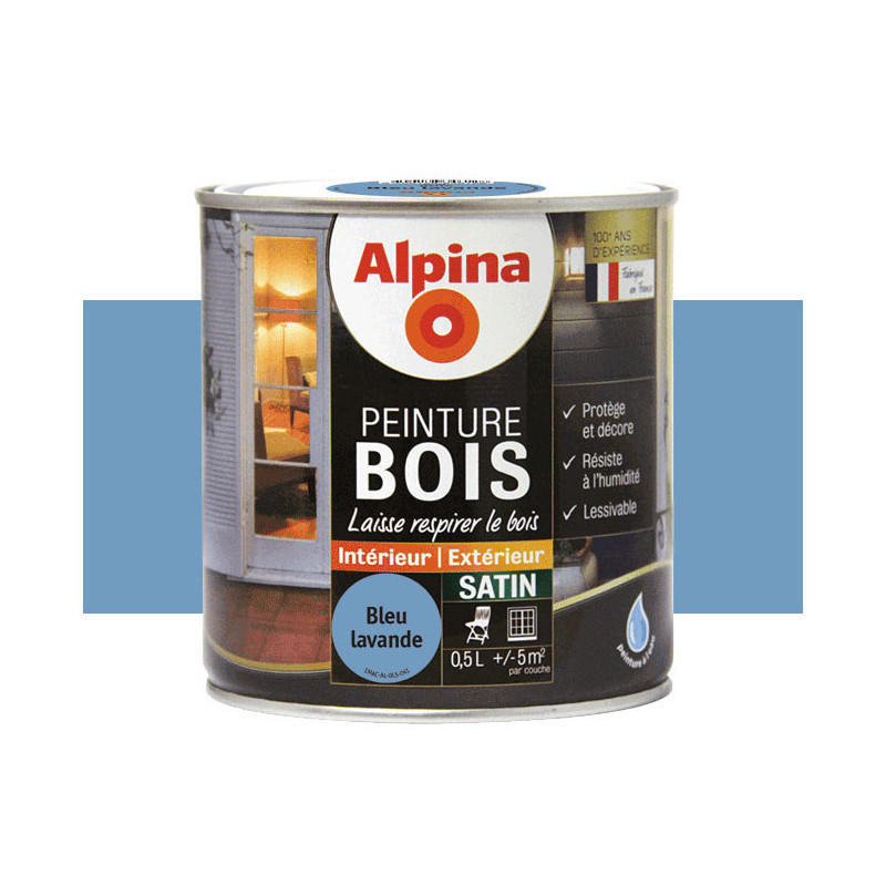 Peinture Alpina spéciale bois microporeuse bleu lavande satin 0.5L