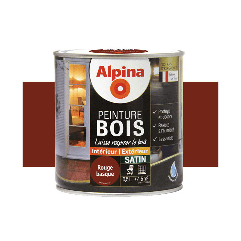 Peinture Alpina spéciale bois microporeuse rouge brique satin 0.5L