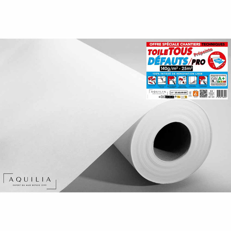 Toile de rénovation Lisse 100% intissé blanc 140 gr 100 x 2500 cm