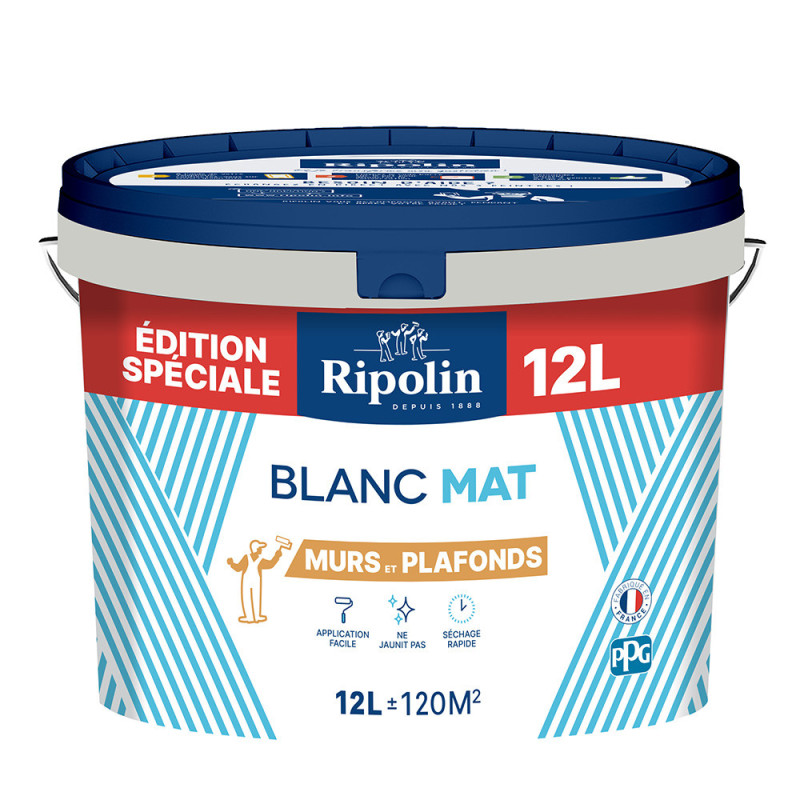 Peinture Ripolin murs et plafonds blanc mat 12L