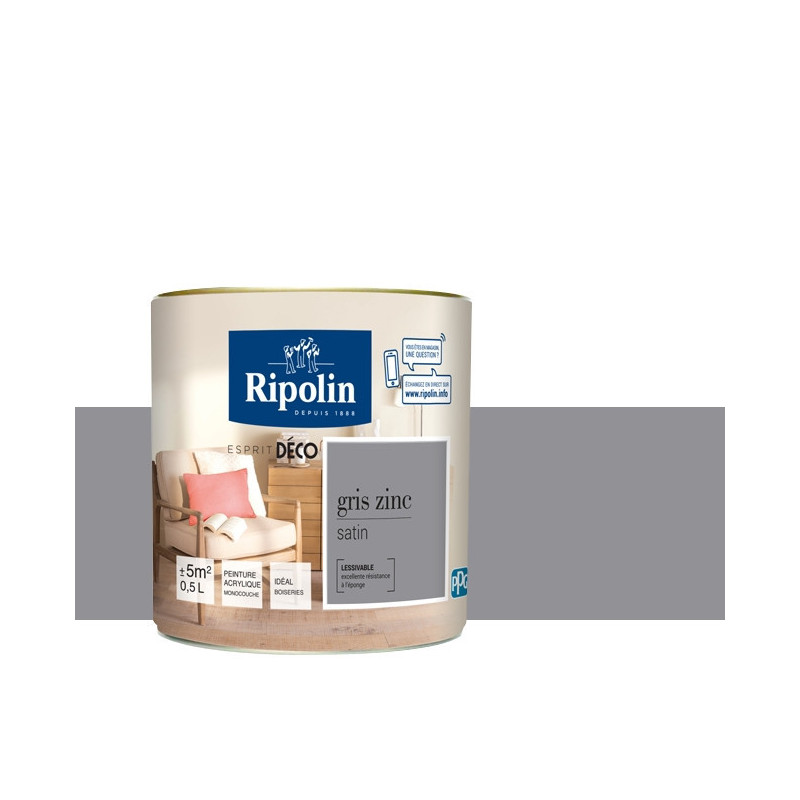 Peinture RIPOLIN Esprit Déco murs, plafonds, boiseries et radiateurs gris zinc satin 0,5L