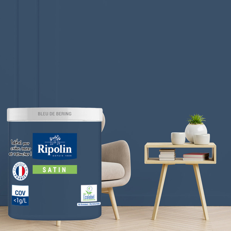 Peinture testeur RIPOLIN Esprit Déco murs, plafonds, boiseries et radiateurs bleu bering satin 75ML