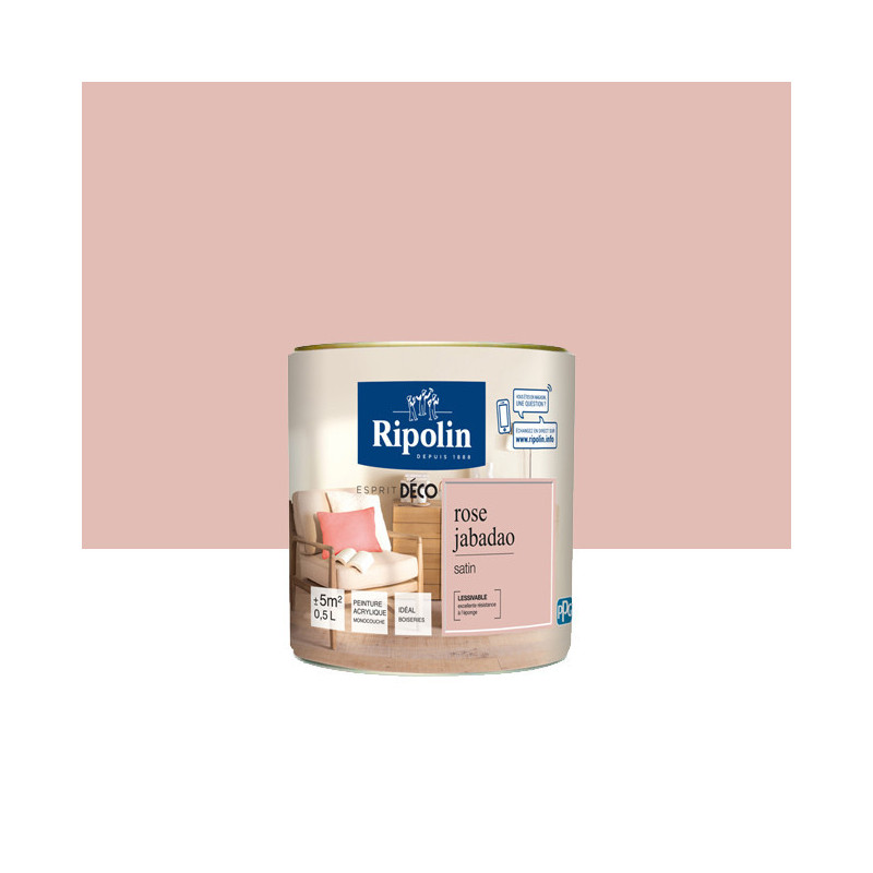 Peinture RIPOLIN Esprit Déco murs, plafonds, boiseries et radiateurs rose jabadao satin 0,5L
