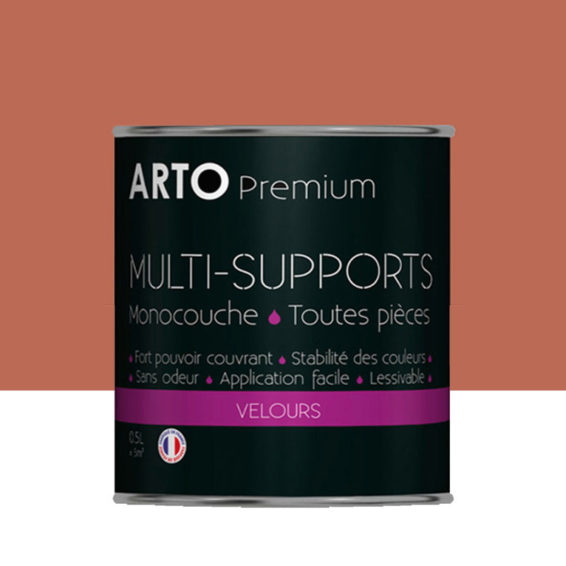 Peinture ARTO premium multi-supports murs, plafonds, boiseries, plinthes et radiateurs terracotta velours 0,5 L