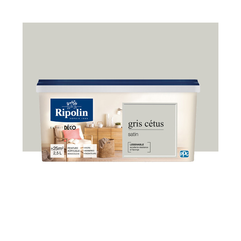 Peinture RIPOLIN Esprit Déco murs, plafonds, boiseries et radiateurs gris cetus satin 2,5L