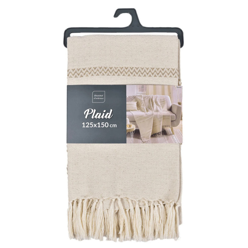 Plaid motif en tissu jacquard à franges beige 125 x 150 cm