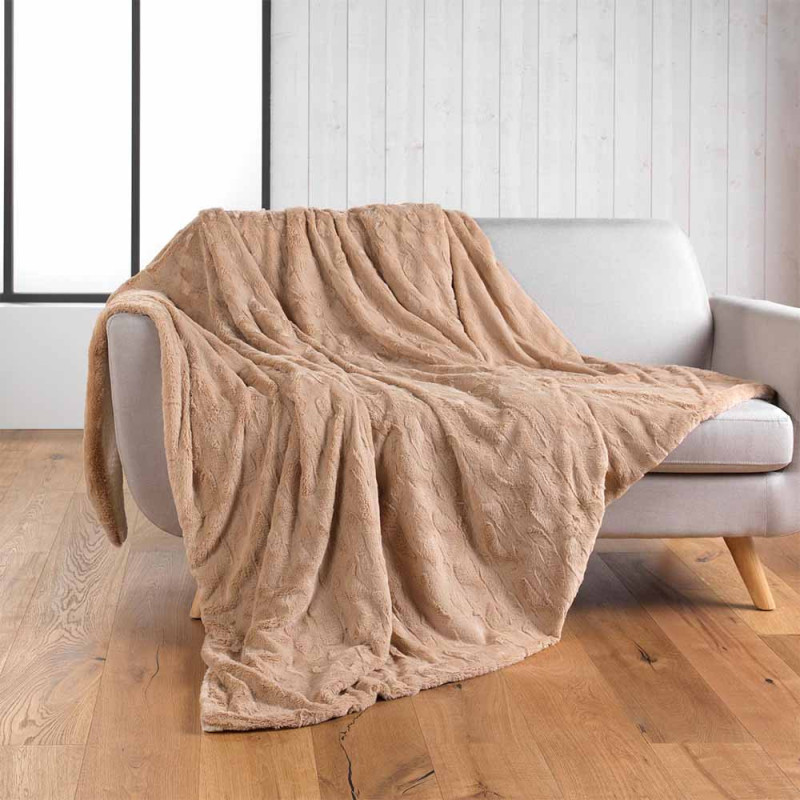 Un plaid imitation fourrure beige sable (180x220 cm) est...