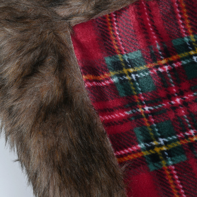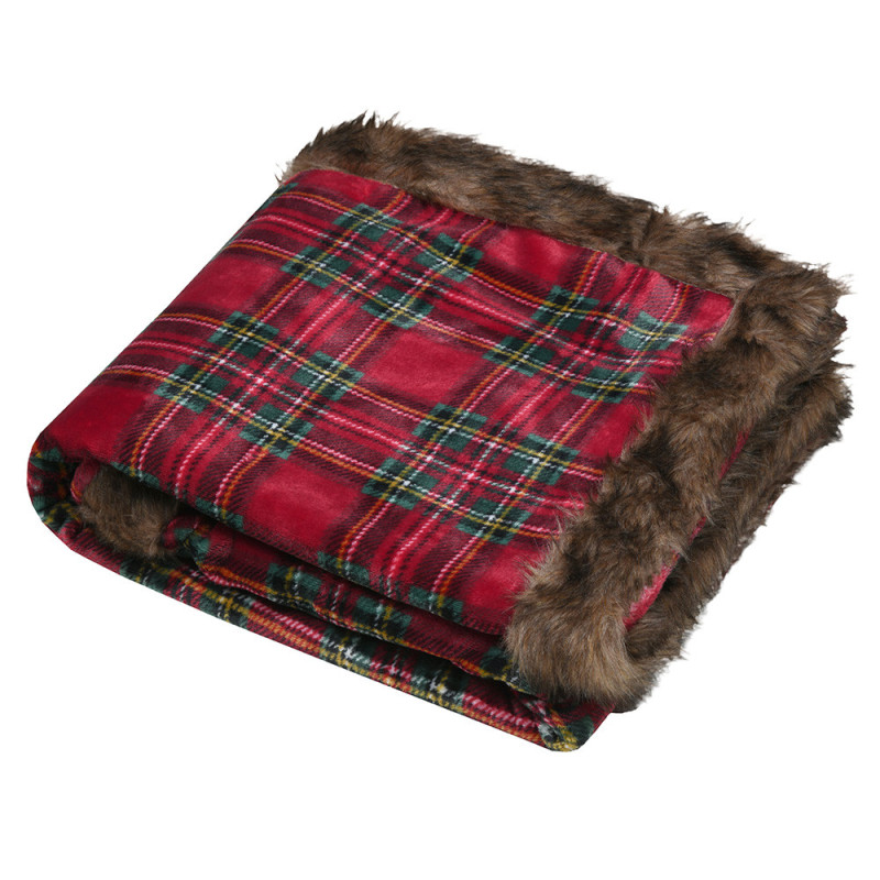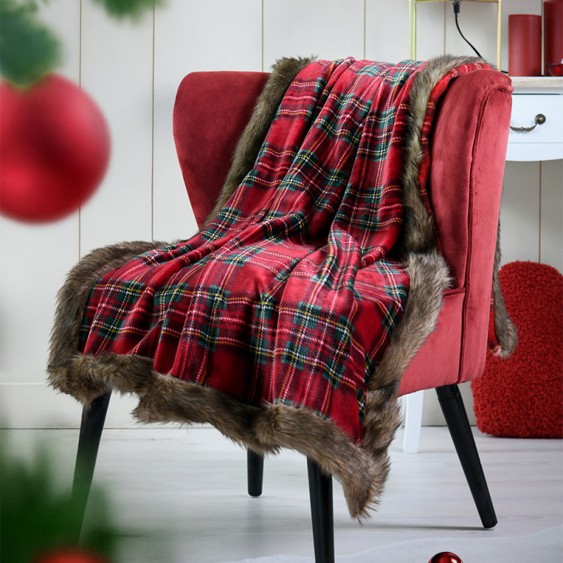 Plaid écossais bordure à fourrure rouge 130x160 cm