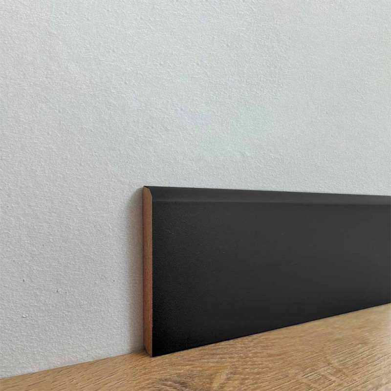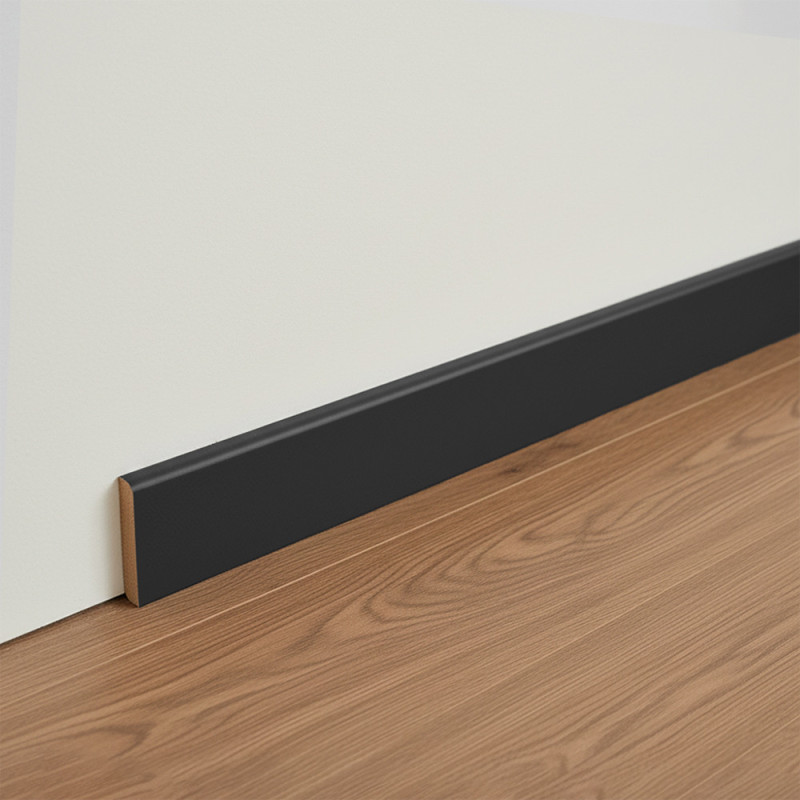 Optez pour une finition moderne et économique avec cette plinthe arrondie revêtue d'un papier noir. Parfaite pour les intérieurs contemporains, elle apporte une touche design tout en étant facile à installer.