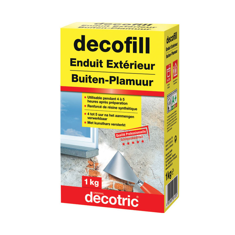 Enduit extérieur de qualité professionnelle. Utilisable pendant 4 ou 5 heures après préparation. Il est renforcé en résine synthétique.