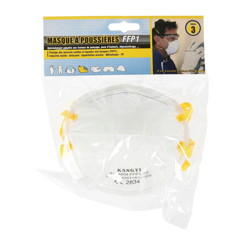 Sachet de 3 masques de protection pour vous protéger efficacement des particules volantes.