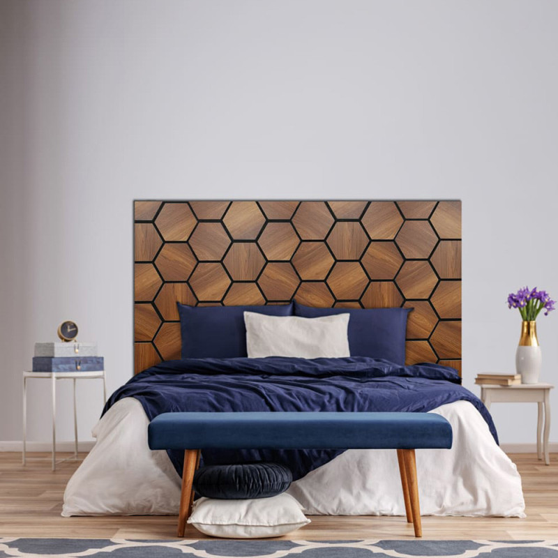 Apportez une touche élégante et contemporaine à vos espaces avec ce panneau bois hexagonal en chêne foncé, au design nid d’abeille raffiné. Dimensions : 65x80 cm, épaisseur 9 mm, monté sur une feutrine noire (60x70 cm, épaisseur 8 mm). Les hexagones en MDF dépassent légèrement de la feutrine, créant un effet 3D moderne et sophistiqué. Ce panneau mural en chêne foncé est idéal pour personnaliser vos murs, ajouter de la texture et de la profondeur à vos pièces. Pose facile et rapide : il est ajustable, à coller ou à agrafer selon vos préférences pour une décoration intérieure pratique et élégante.
