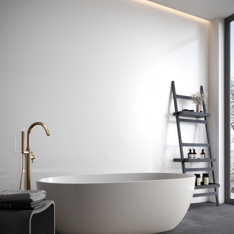 Illuminez vos pièces avec cette dalle murale blanche brillante de 80 x 40 cm. La plaque de support est faite à 75% de poudre de marbre, ce qui lui confère une parfaite stabilité dimensionnelle sans besoin de joint de dilatation. La couche de laque (vernis) permet d'obtenir une plus grande résistance aux frottements et poinçonnements. Son système click 2G est facile et rapide à poser, sans cale de frappe ni maillet, et il est totalement étanche. La dalle peut se couper au cutter et s'encolle directement sur les surfaces existantes poreuses ou non poreuses telles que le carrelage, avec une colle polymère appliquée en serpentins au dos. Grâce à sa couche d'usure de 0.50mm, elle est compatible avec une pose au sol (la colle doit alors être répartie sur toute la surface).