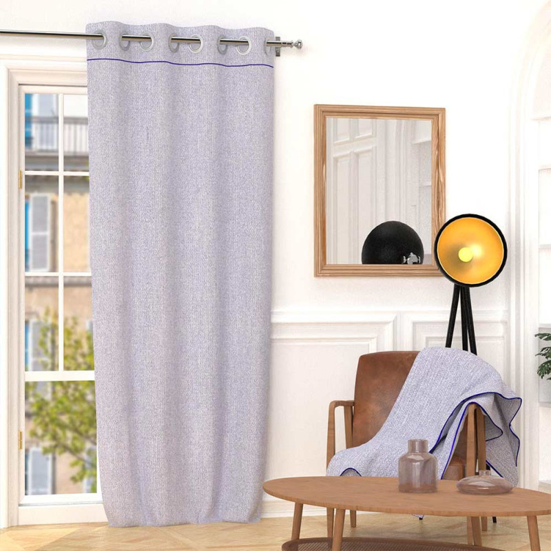 Rideau 100% tissu recyclé jacquard bleu pierre 135x250 cm