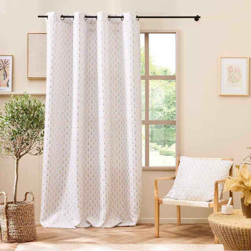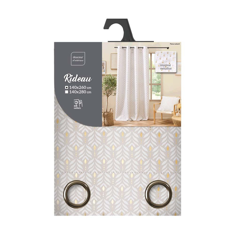 Rideau imprimé feuillage beige 140x260