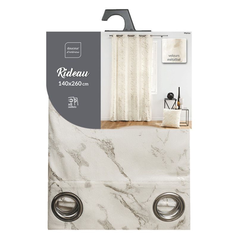 Rideau velours imprimé métallisé blanc et or 140x260 cm