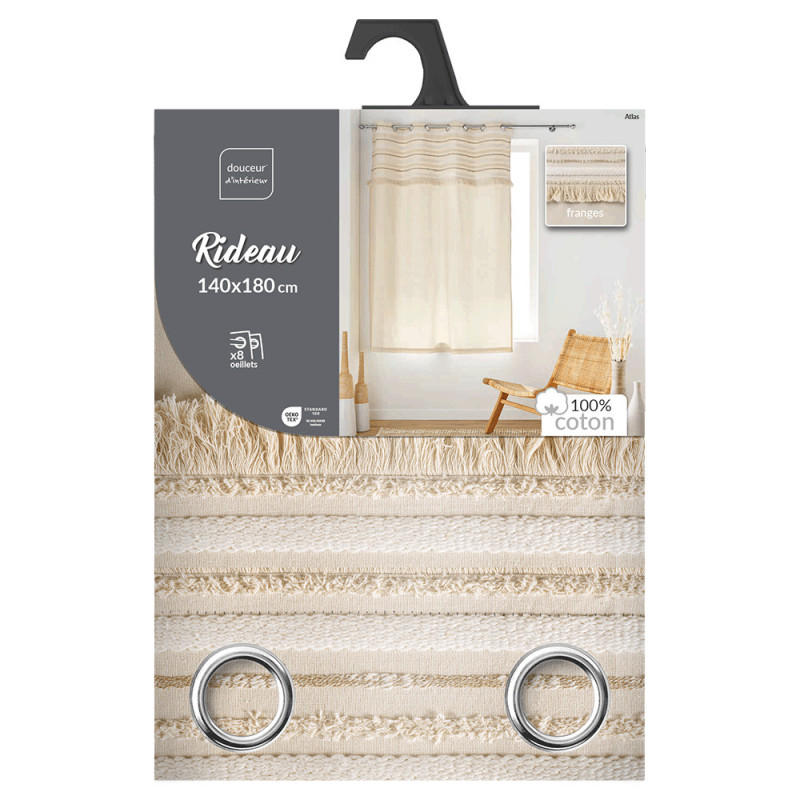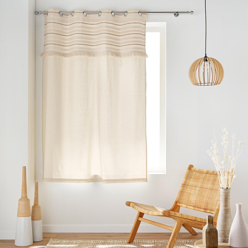 Rideau court tissé top à franges écru 140x180 cm