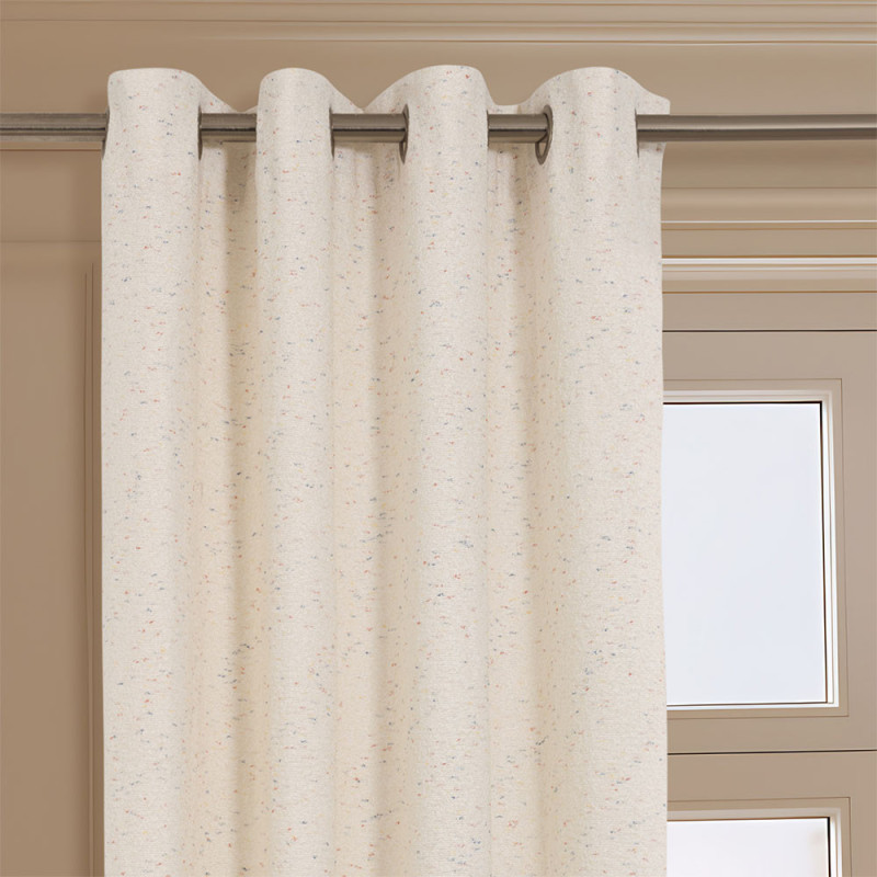 Rideau effet tweed écru avec liseré multicolore 140 × 250cm