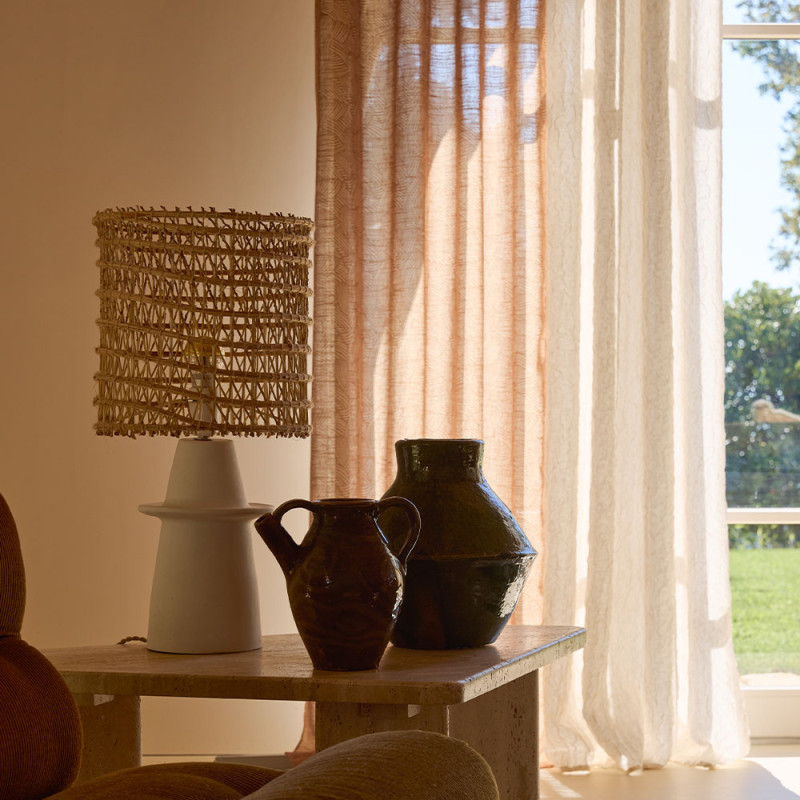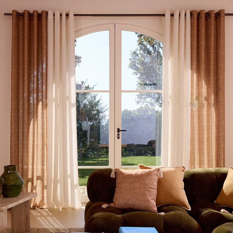 Rideau tissu Ouarza gaufré doublé écru chiné ivoire 140x250 cm