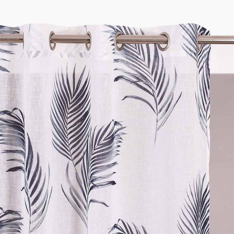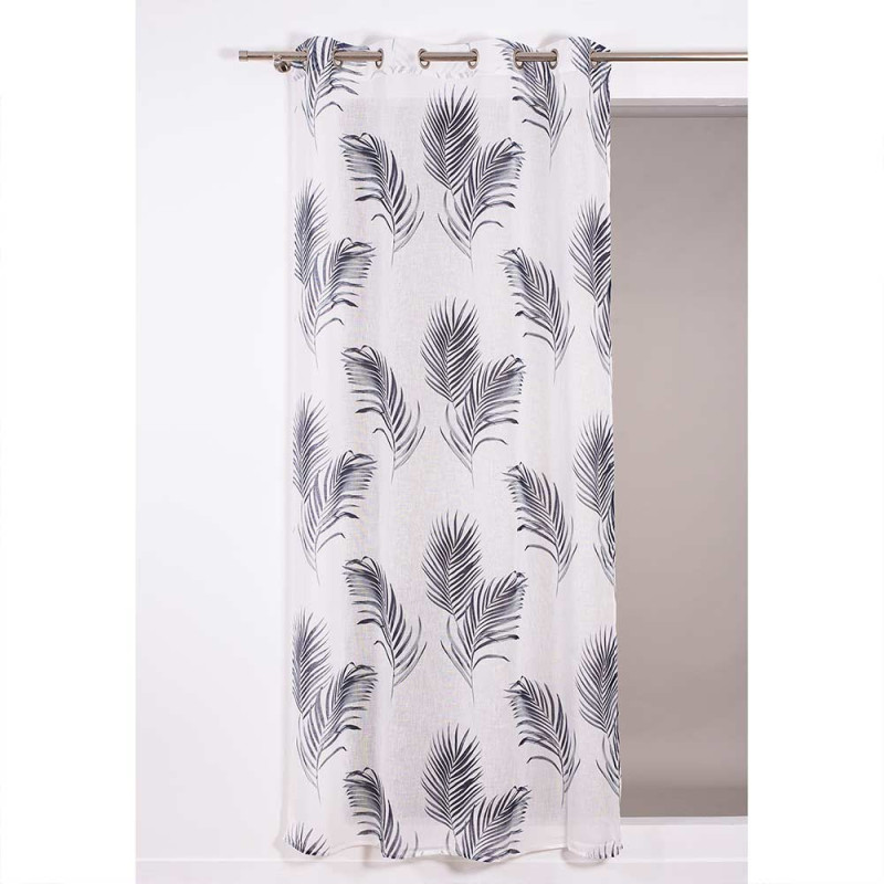 Rideau tissu blanc à palmes grises 140x240 cm