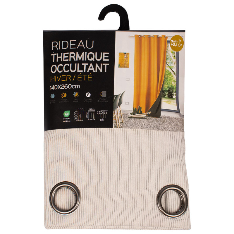 Rideau isolant thermique en velours côtelé 4 mm naturel 140x260 cm