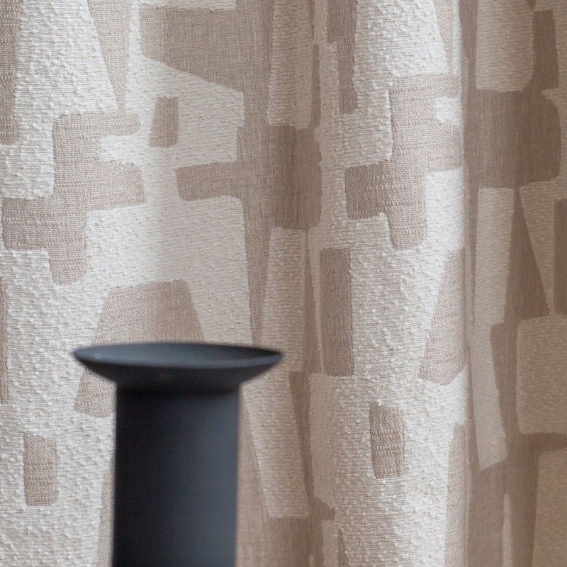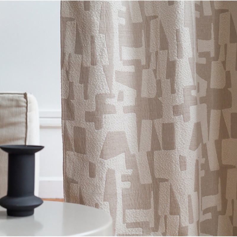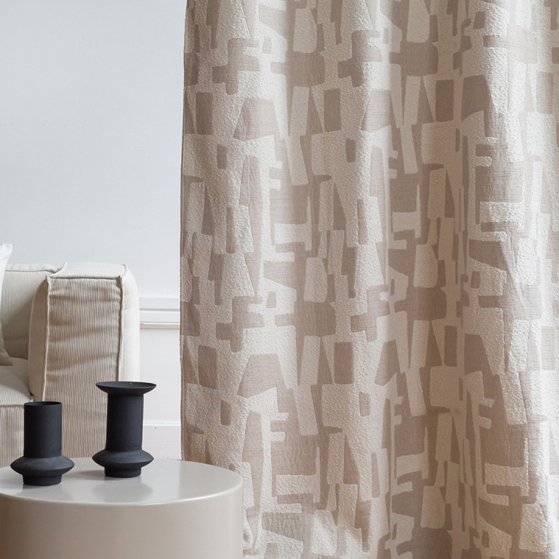 Rideau isolant thermique jacquard bouclette motif abstrait naturel beige NATACHA 140 x 250 cm