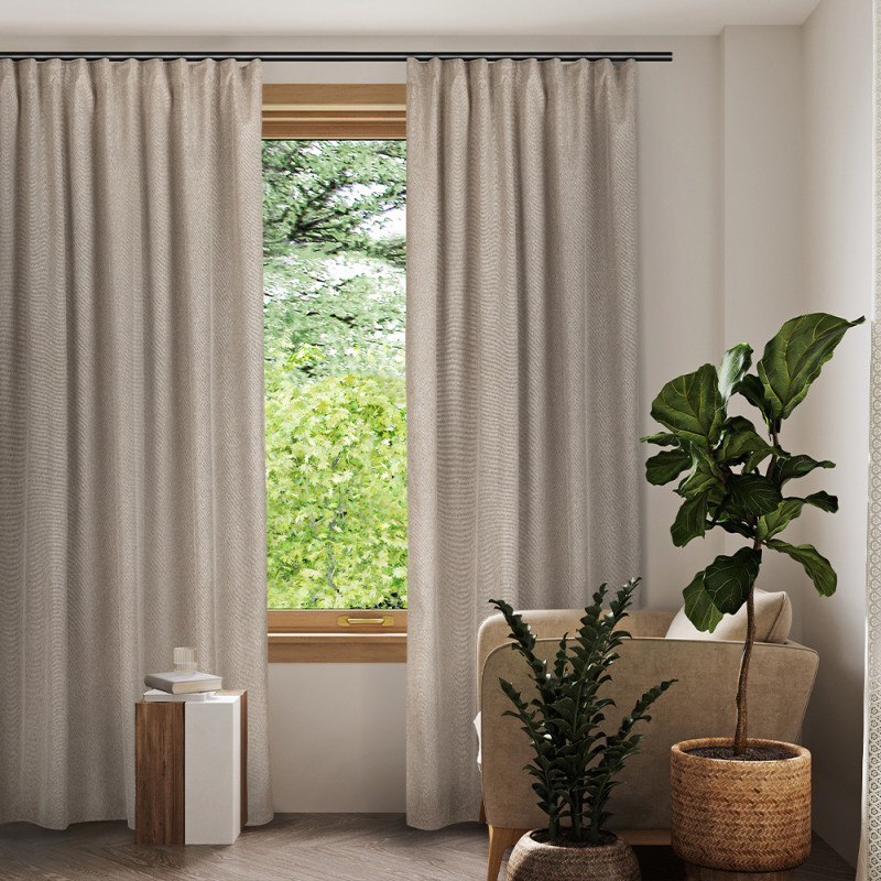 Rideau isolant thermique ruflette uni toile chinée lin GASTON 140 x 250 cm
