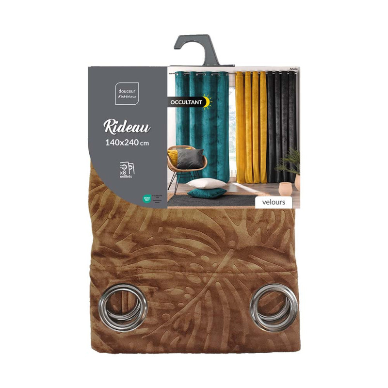 Apportez une touche d'élégance à votre intérieur avec notre rideau occultant velours à relief camel 135x240 cm. Ce rideau raffiné bloque la lumière tout en créant une atmosphère chaleureuse et intime. Sa texture en velours avec un relief subtil ajoute une profondeur esthétique, tandis que sa teinte camel se marie harmonieusement avec divers styles de décoration. Parfait pour les salons ou les chambres, il est simple à installer et combine à la fois esthétique et fonctionnalité. Choisissez ce rideau pas cher pour transformer votre espace en un véritable havre de paix !