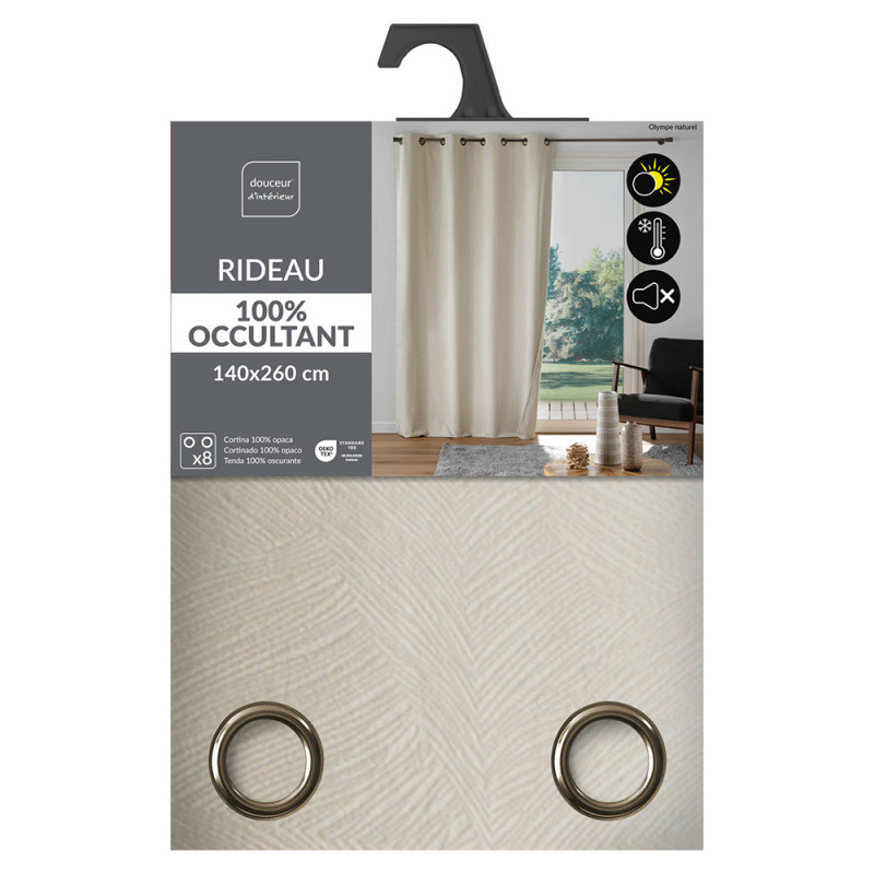 Rideau Olympe occultant velours à relief naturel 140x260 cm