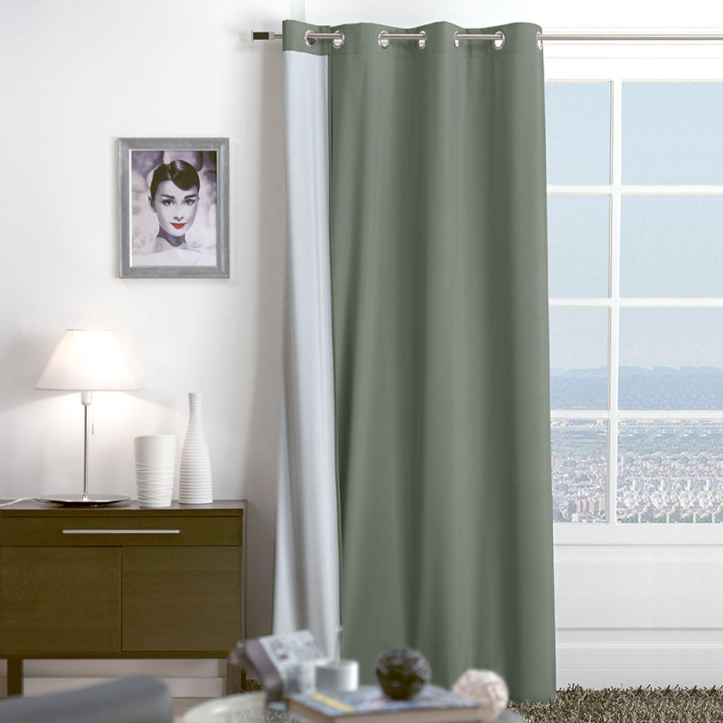 Rideau thermique SUN vert kaki en 140 x 250 cm. C'est un excellent isolant thermique pour repousser la chaleur grâce à son envers métallisé argent. Idéal en été, pour vous protéger de la lumière et du soleil.