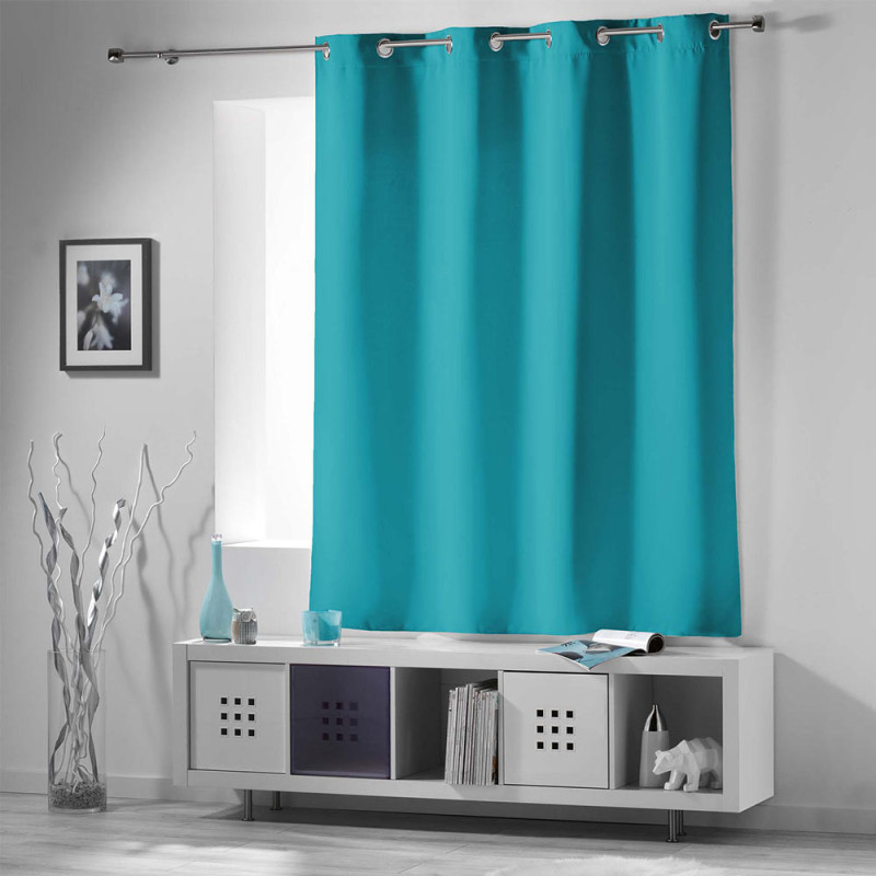 Rideau tissu occultant court bleu 135 x 180 cm