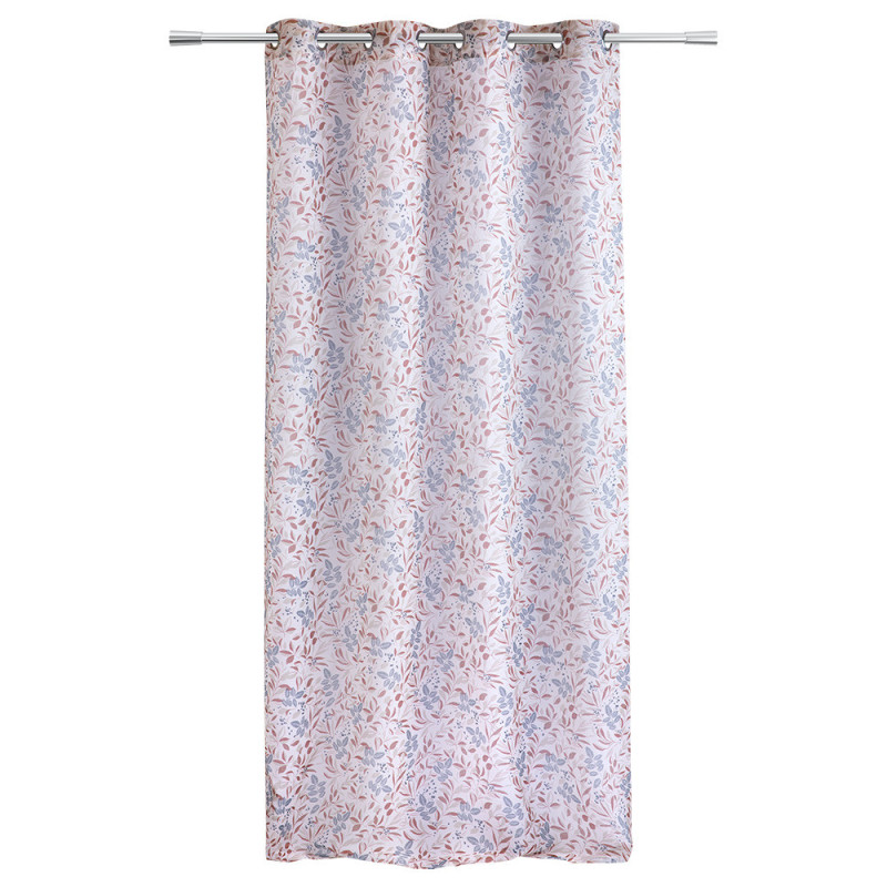 Rideau voilage étamine feuillage rose et bleu 140x240 cm