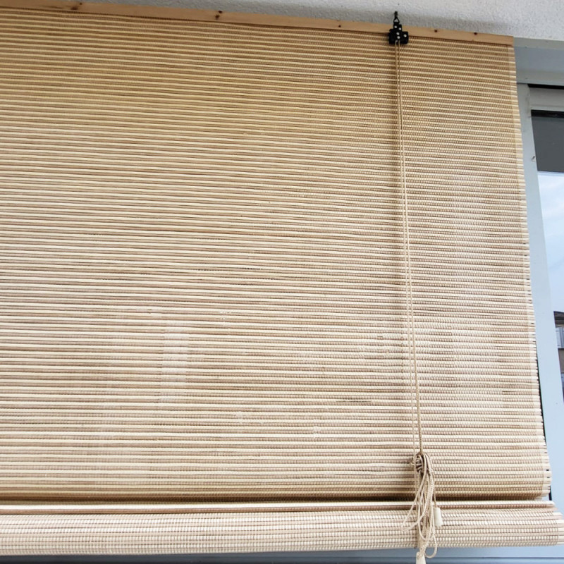 Le store enrouleur pour intérieur ou extérieur abrité, est composé de lattes bambou de couleur naturel. Le store enrouleur mesure 60 cm de large et 180 cm de hauteur est facile à mettre en place. Ce store enrouleur permettra de filtrer la lumière dans la pièce. Il est idéale pour des intérieurs ou des extérieurs abrités. Ne pas laisser dans une pièce humide ou au contact direct de la pluie !