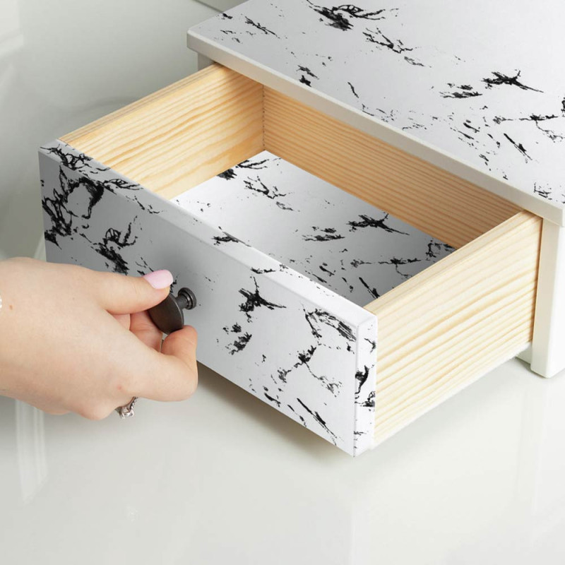 Rouleau adhésif D-C-FIX marbre noir 45x150 cm. Ce modèle est idéal pour relooker rapidement un objet, un meuble, un intérieur de tiroir...