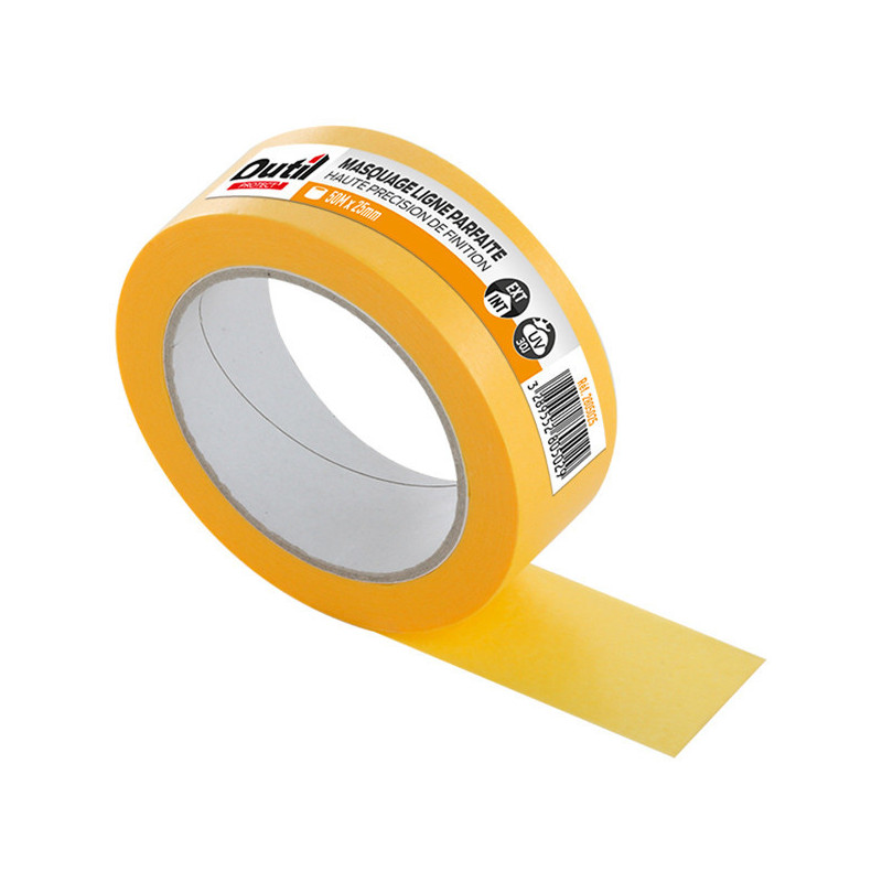 Ruban adhésif ligne parfaite à haute précision de finition de 50m x 38mm, il résiste aux UV en intérieur comme en extérieur.