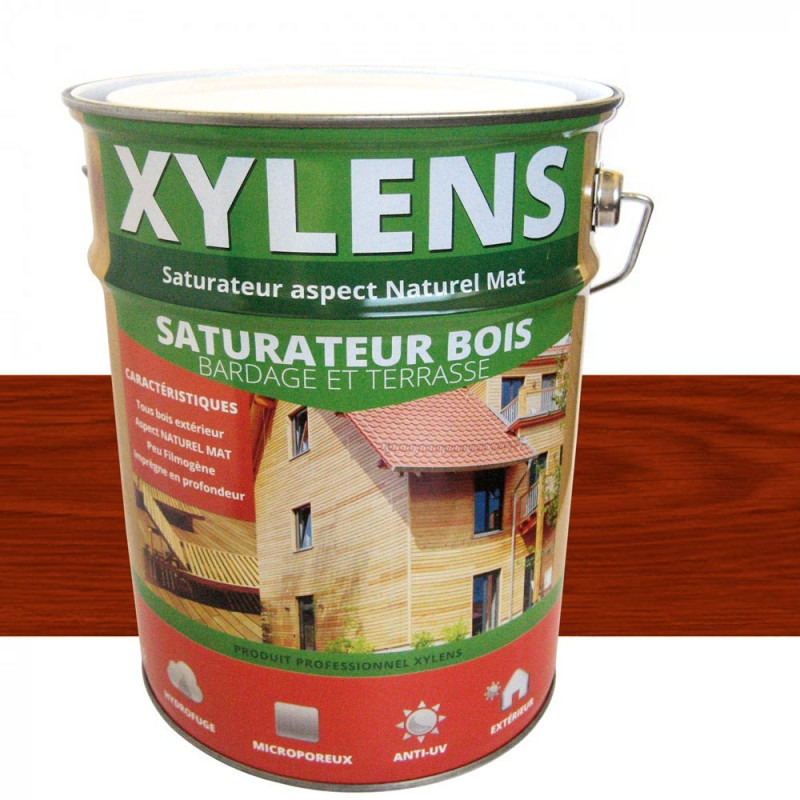 Le saturateur bois XYLENS teinte teck pénètre le bois en profondeur et assure ainsi une protection longue durée. Il ne forme pas de film épais en surface : le bois garde un aspect naturel. Ce produit convient à n'importe quel bois comme les résineux, difficilement impregnable avec des lasures traditionnelles. Le produit est prêt à l'emploi sauf pour les bois de type éxotiques où nous vous recommandons de diluer le saturateur à 10 % de White Spirit pour faciliter l'accroche permet de conserver l'aspect naturel du bois. S'utilise sur les menuiseries et terrasse.